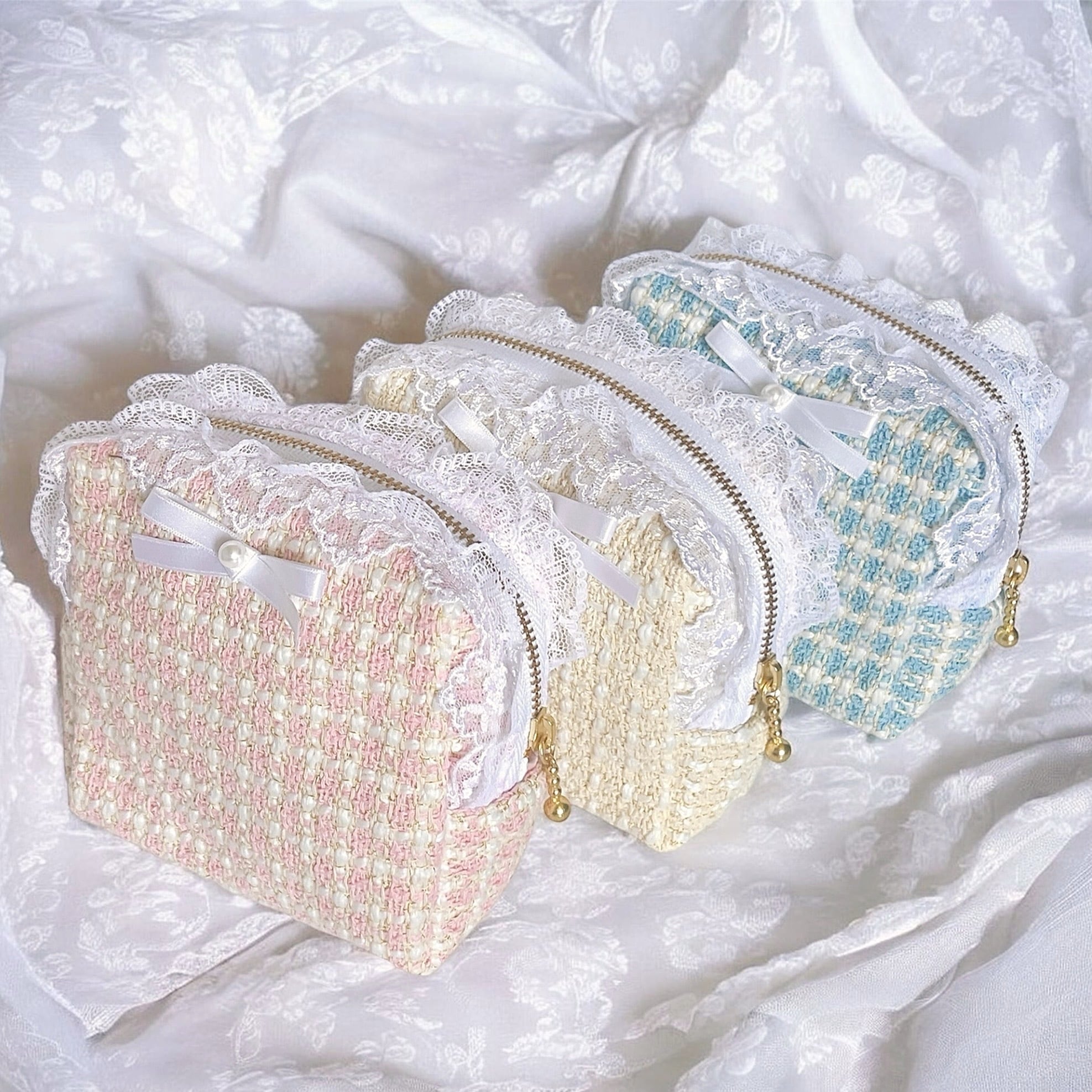 ラメ糸が織られているツイード生地で、まるで星屑のようにキラキラ輝くスクエアポーチです♪